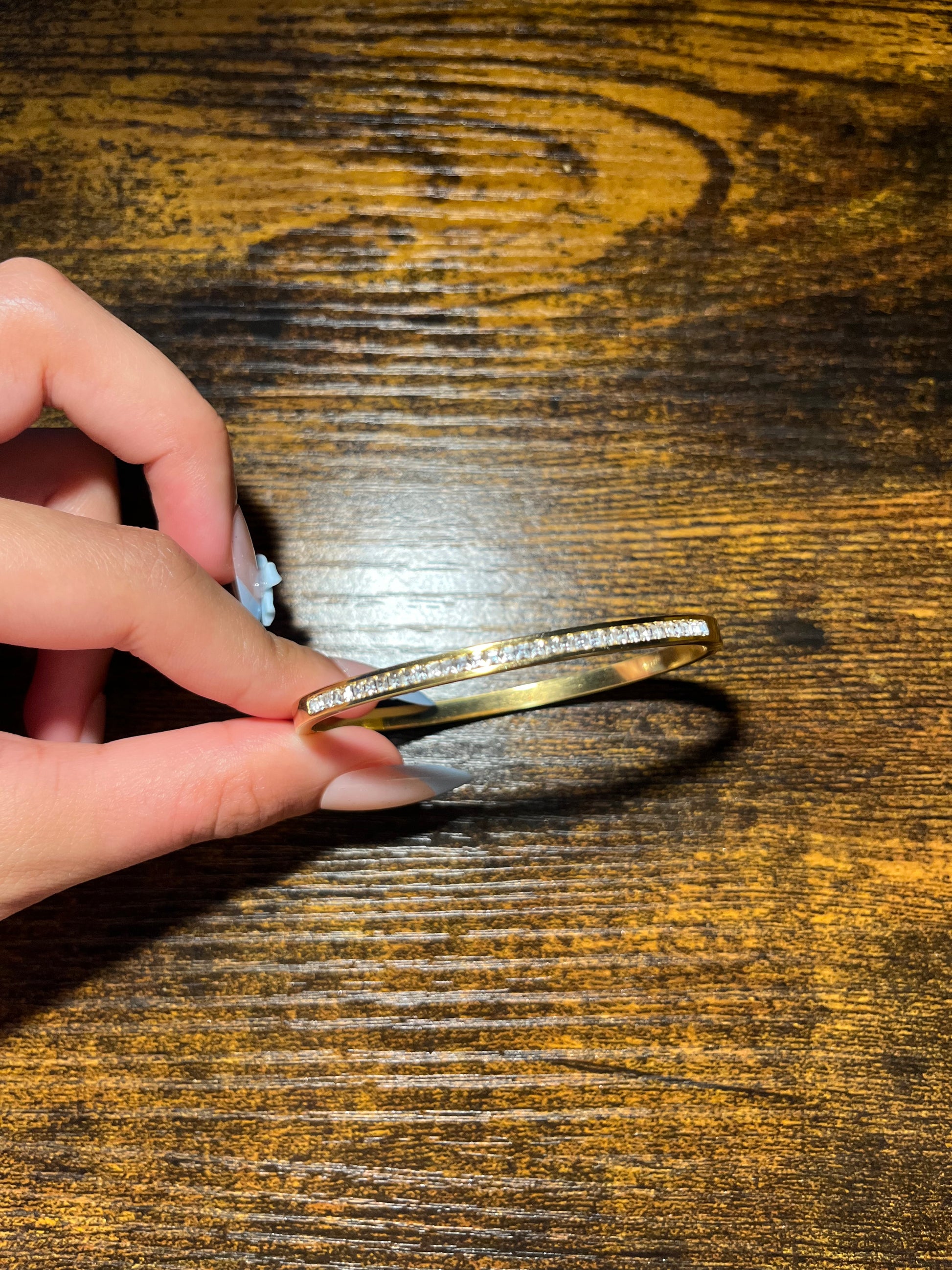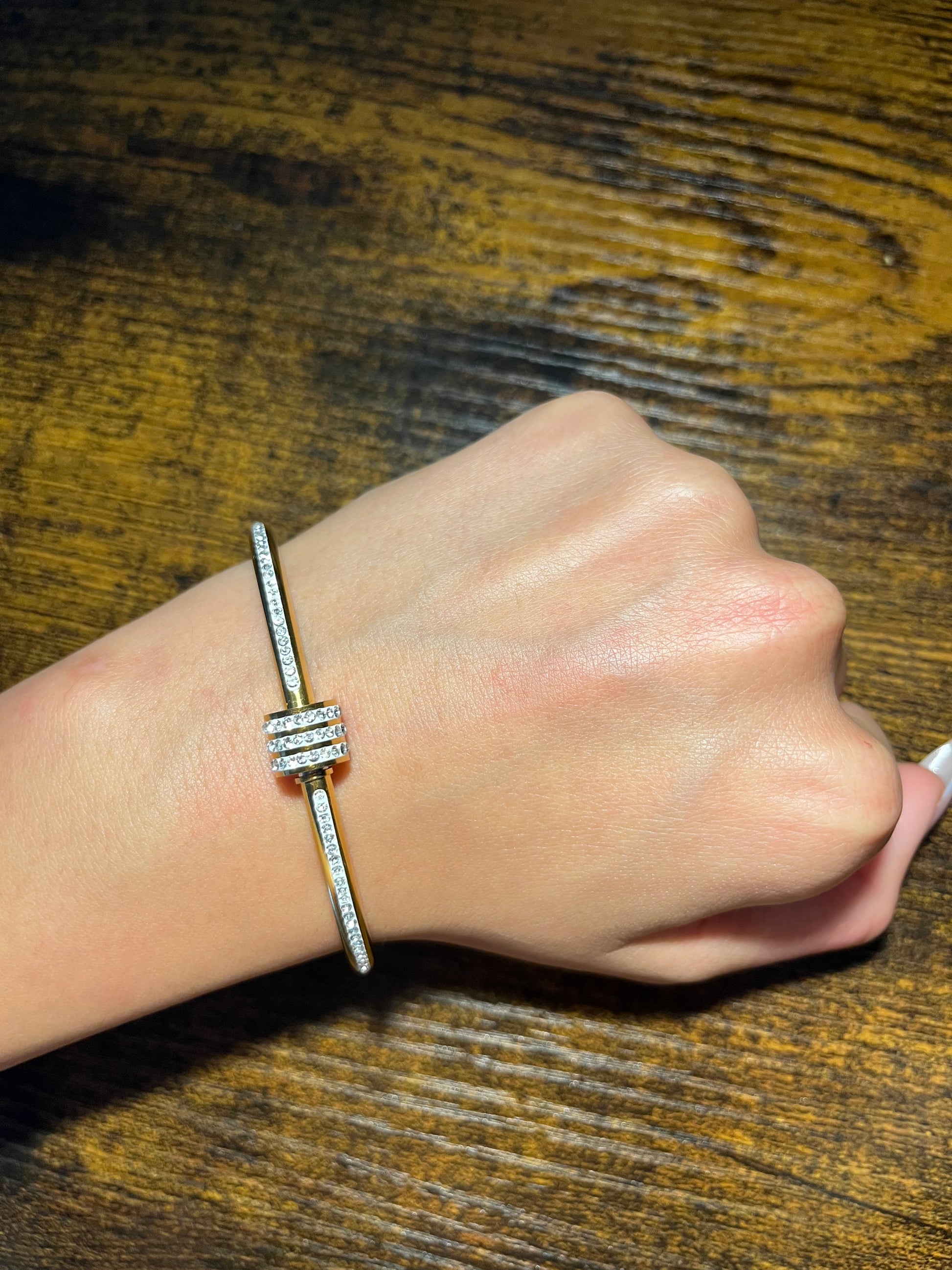 Elegant gold titanium bracelet with a classic yet modern design, adorned with sparkling zircon stones for a touch of sophistication. Perfect for daily wear or special occasions, it’s rust-resistant and retains its shine over time. A stylish choice for women who appreciate beauty in every detail.